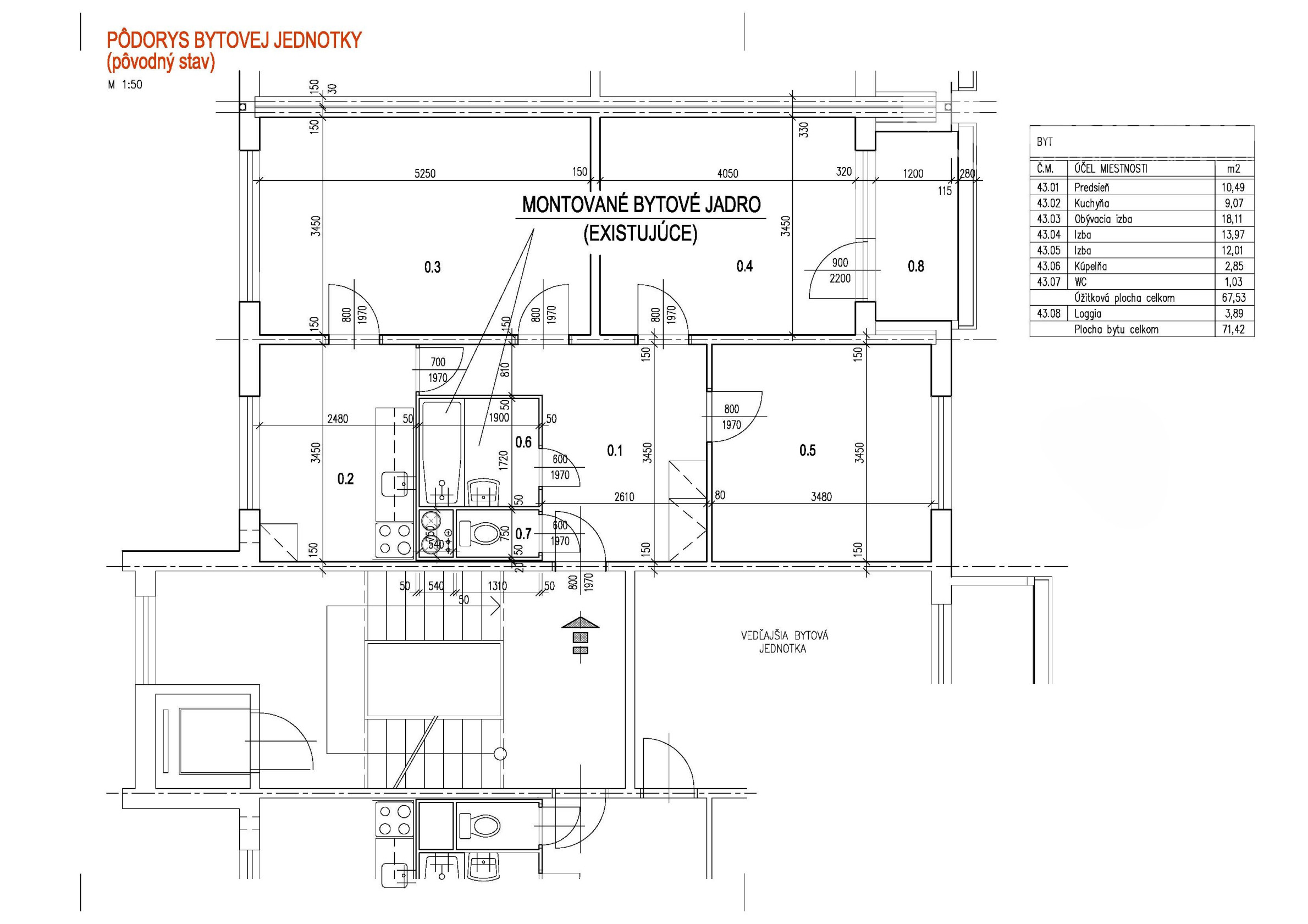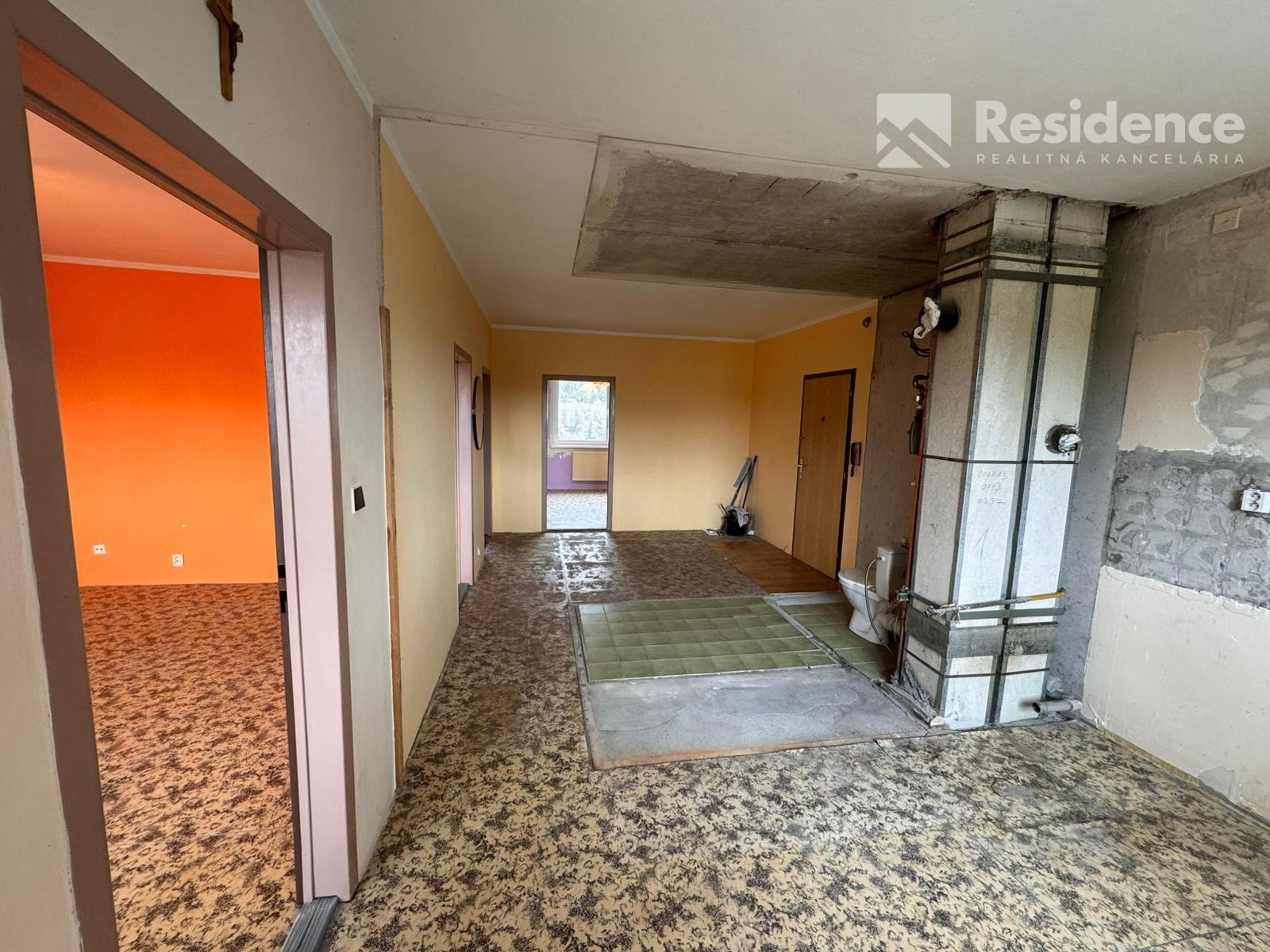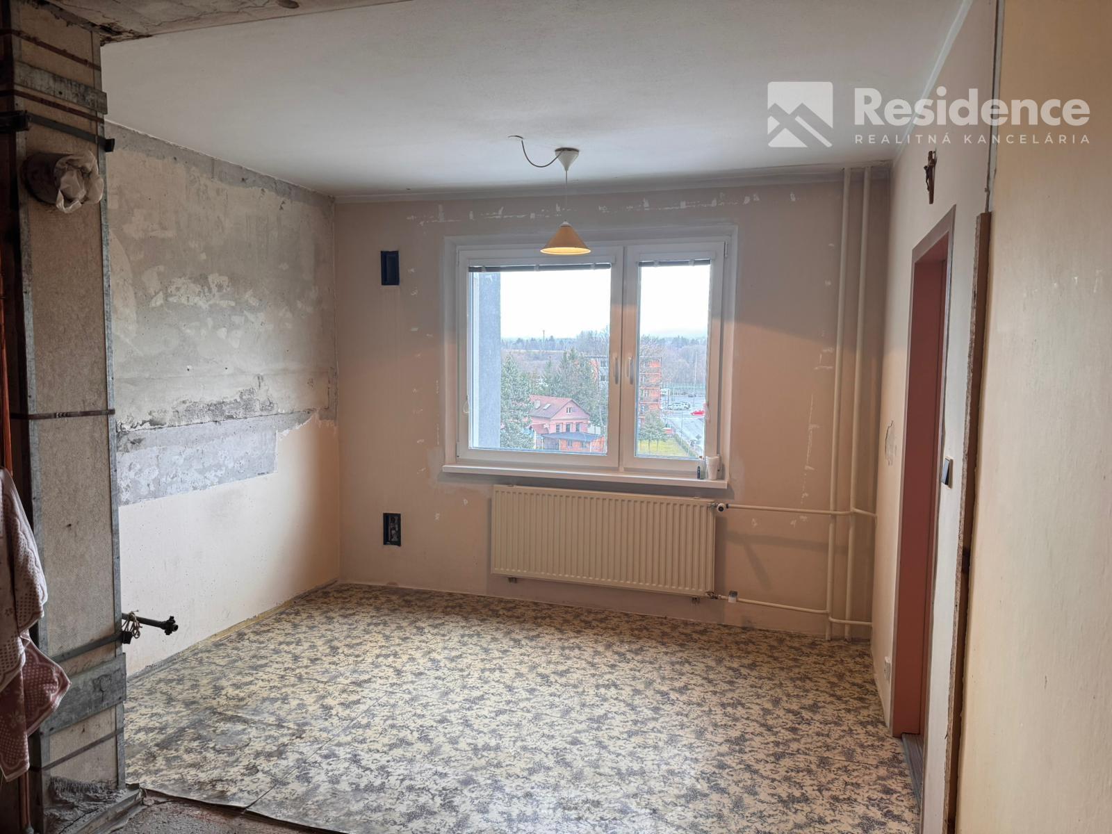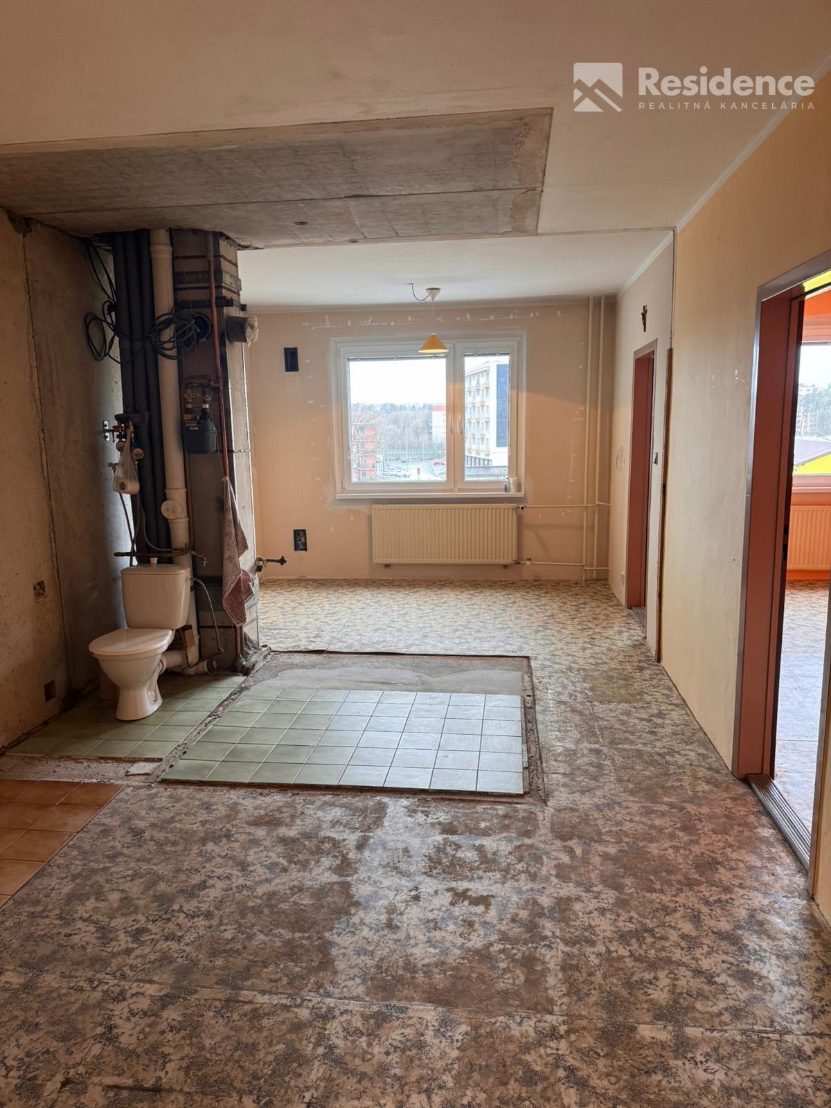 Stav nehnuteľnosti: Byt je v pôvodnom stave, aktuálne je vyprataný a je vybúrané bytové jadro. V byte boli vymenené staré okná za nové s trojsklom.