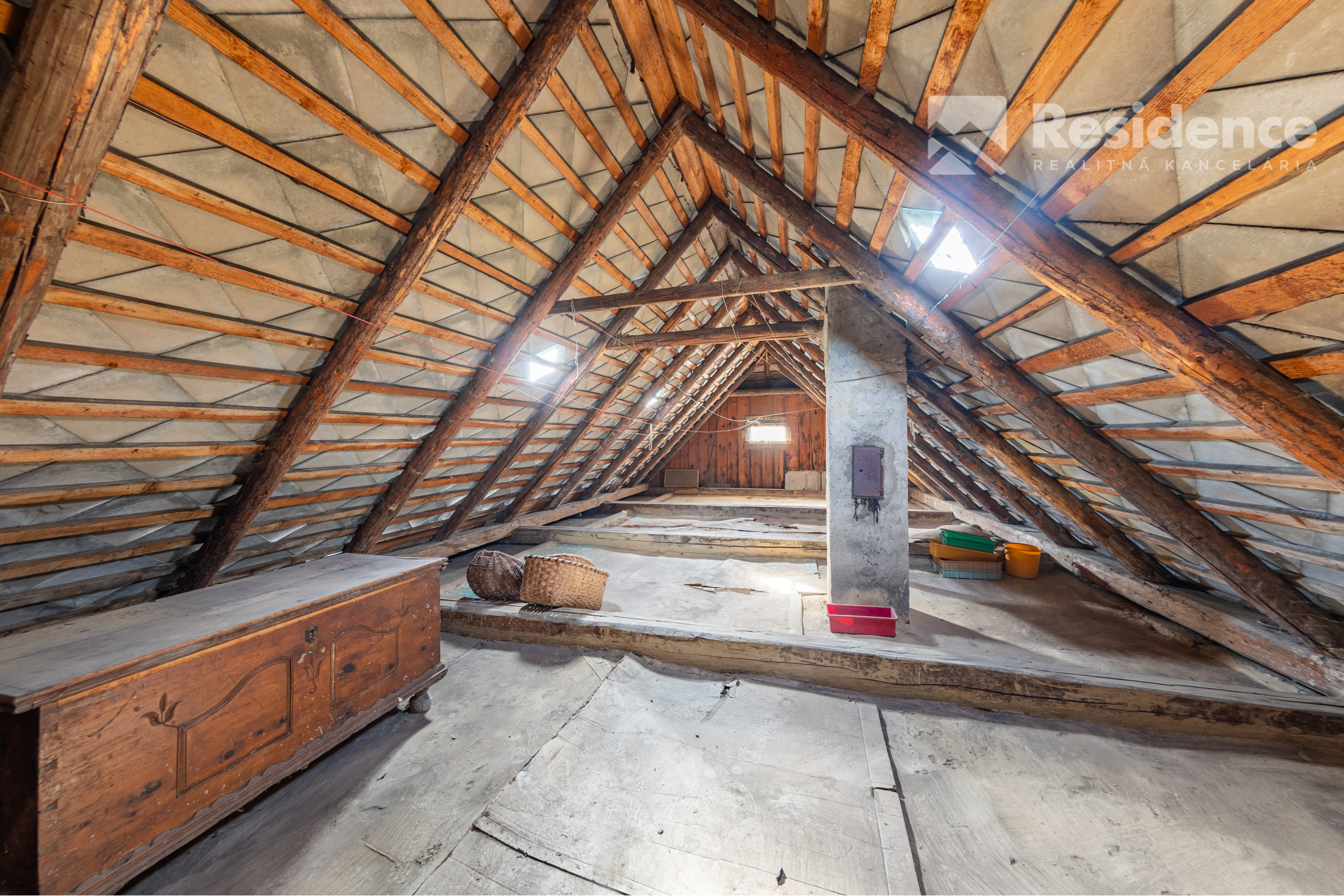 Podkrovie je možné zobytniť, pričom prístup doň je zabezpečený schodiskom z pristavby. Súčasťou nehnuteľnosti sú aj hospodárske priestory, ktoré možno využiť na skladovanie, dielňu alebo iné praktické využitie, prípadne na vybudovanie terasy. Novo pripojená kanalizácia zároveň umožňuje jednoduché dobudovanie kúpeľne podľa predstáv nového majiteľa.