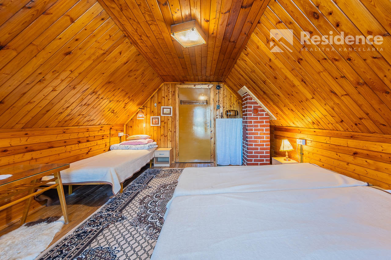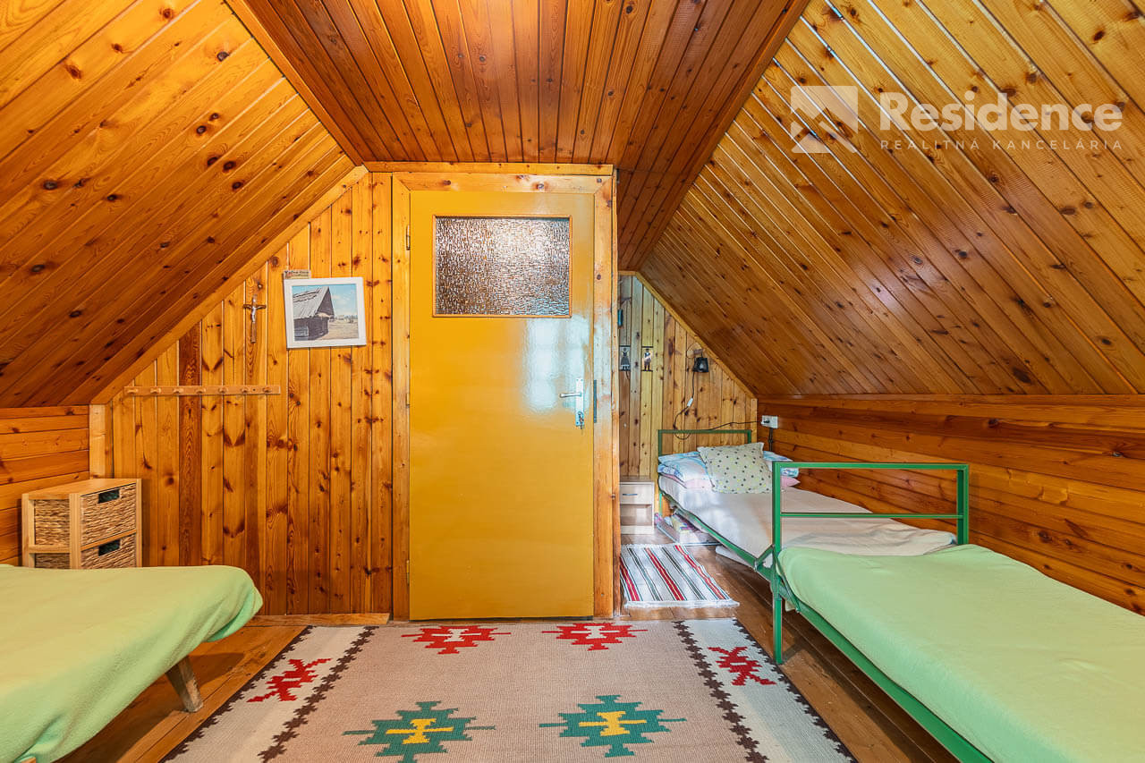Na poschodí sú dve samostatné izby, v každej po tri postele, vhodné pre väčšiu rodinu alebo partiu priateľov.