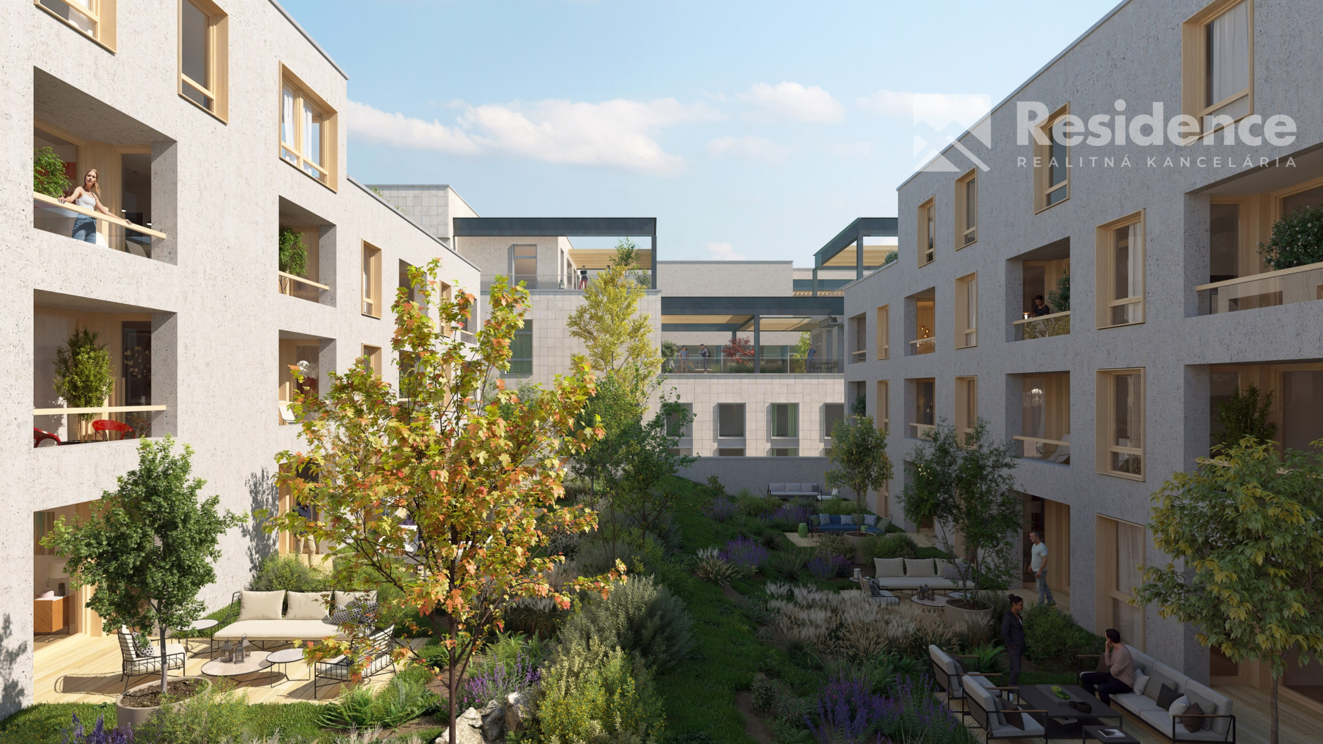 • Komunitná relaxácia: Rezidenti majú k dispozícii privátne zelené átrium vo vnútrobloku, ktoré slúži ako pokojná zóna na oddych priamo v mieste bydliska.
